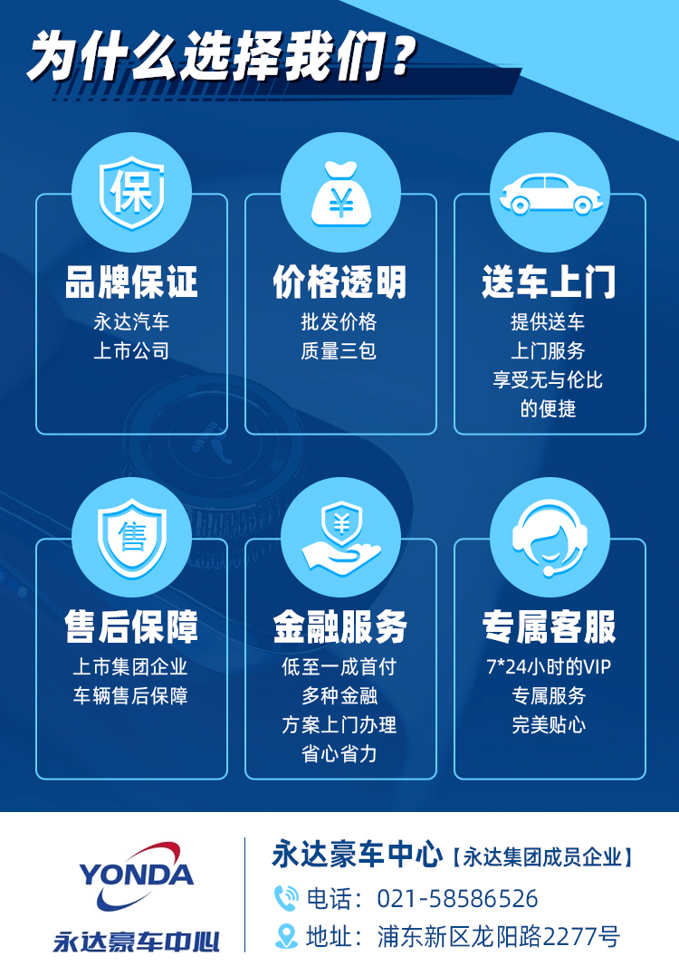 定制车领域因其新兴,相关监管尚不完善,厂家良莠不齐。永达豪车中心,以二十三年高端汽车服务口碑为自我约束,为客户严格把控质量品质,坚决杜绝不合格厂方及车辆的代理销售。